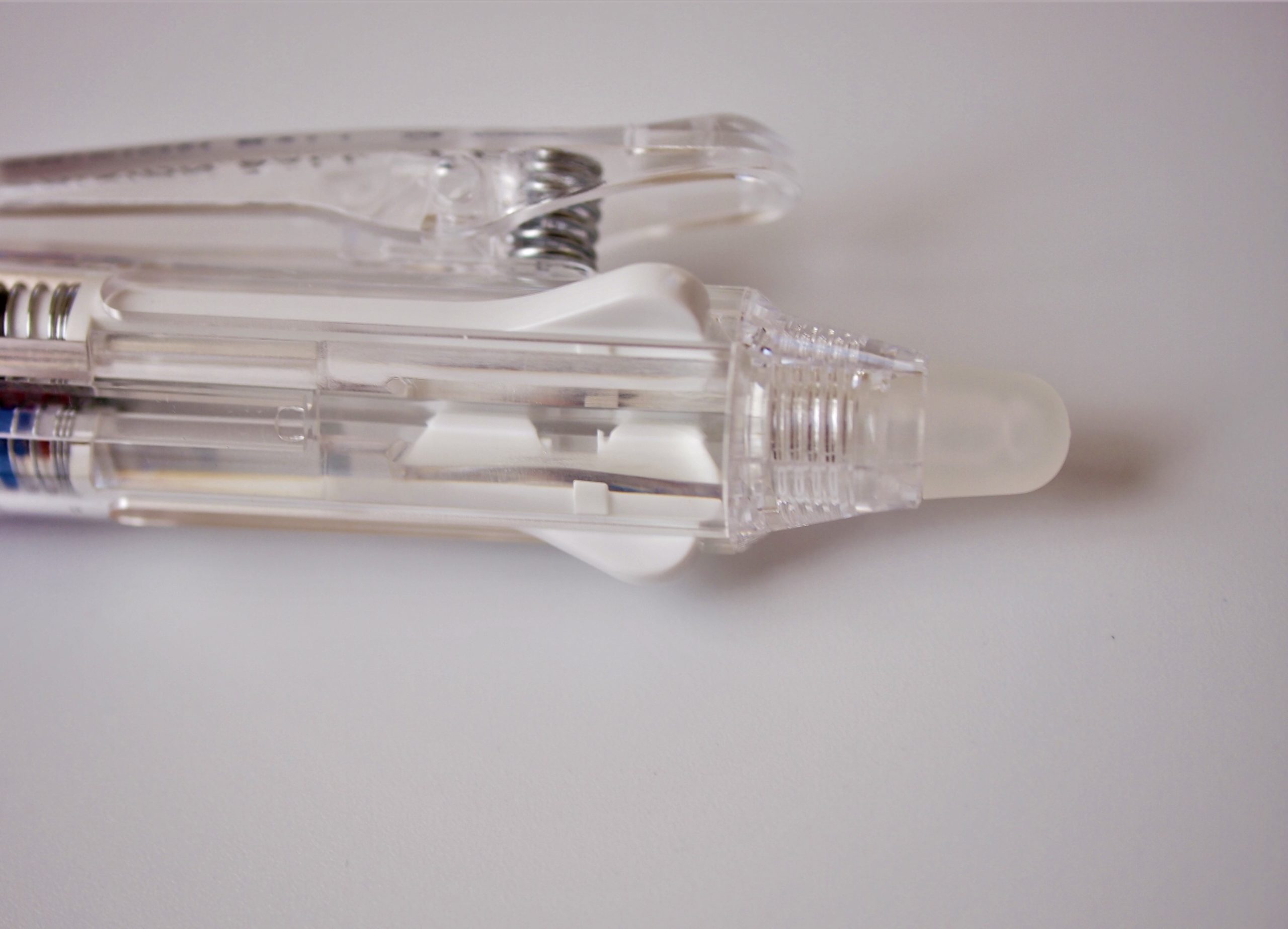 スライドレバーが白色のため、入れ替えるインキ色を気にせずに済みます。こういう心遣いが嬉しい。白色のレバーも透明ボディとマッチしています。