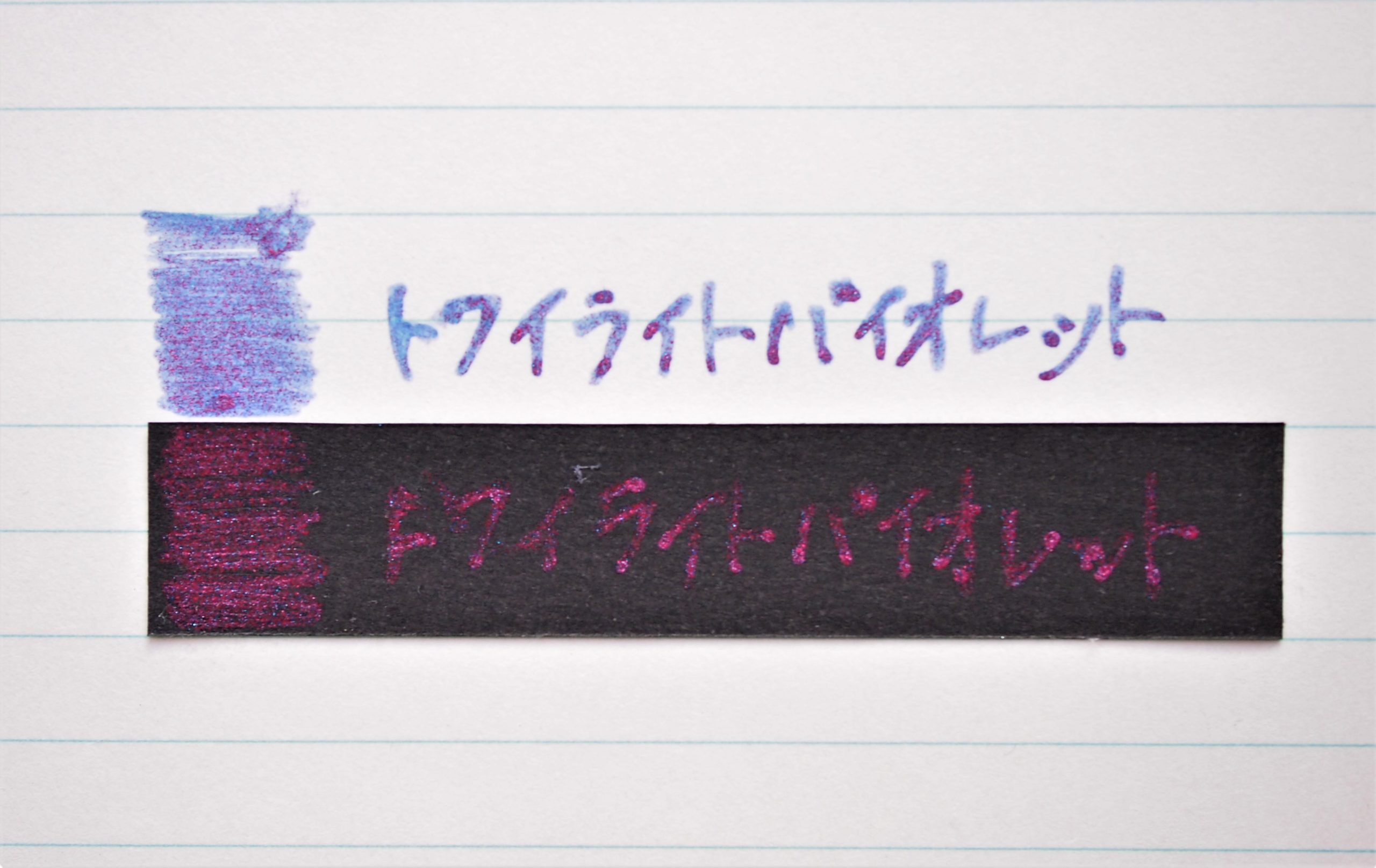 「バイオレット」のインクにラメ顔料の「レッド+ブルー」を合わせたインクです。
