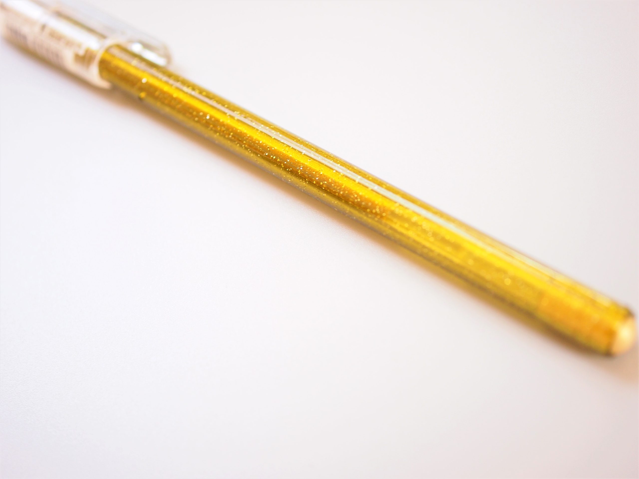デュアルメタリックはラメが施されたインク色のボディ、よく見ると透明な軸。線の太さは1.0mmです。