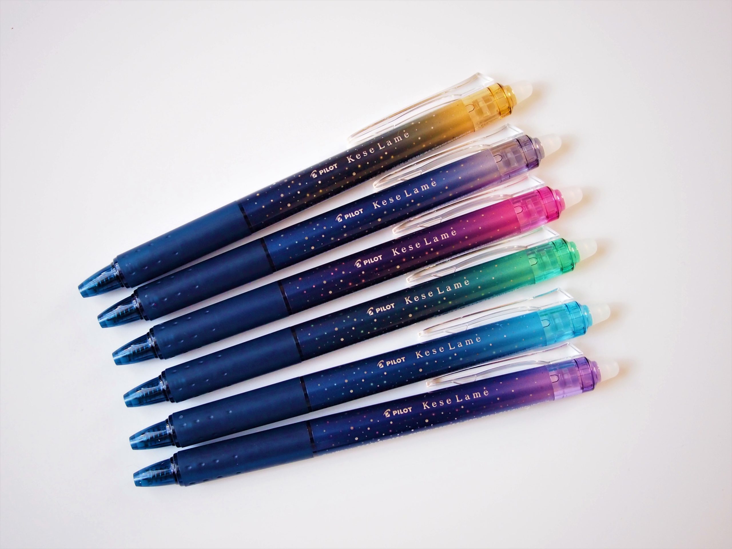 フリクションシリーズからラメペンが登場してしまいました。ラメが入っているのに消せるという素晴らしい機能です。