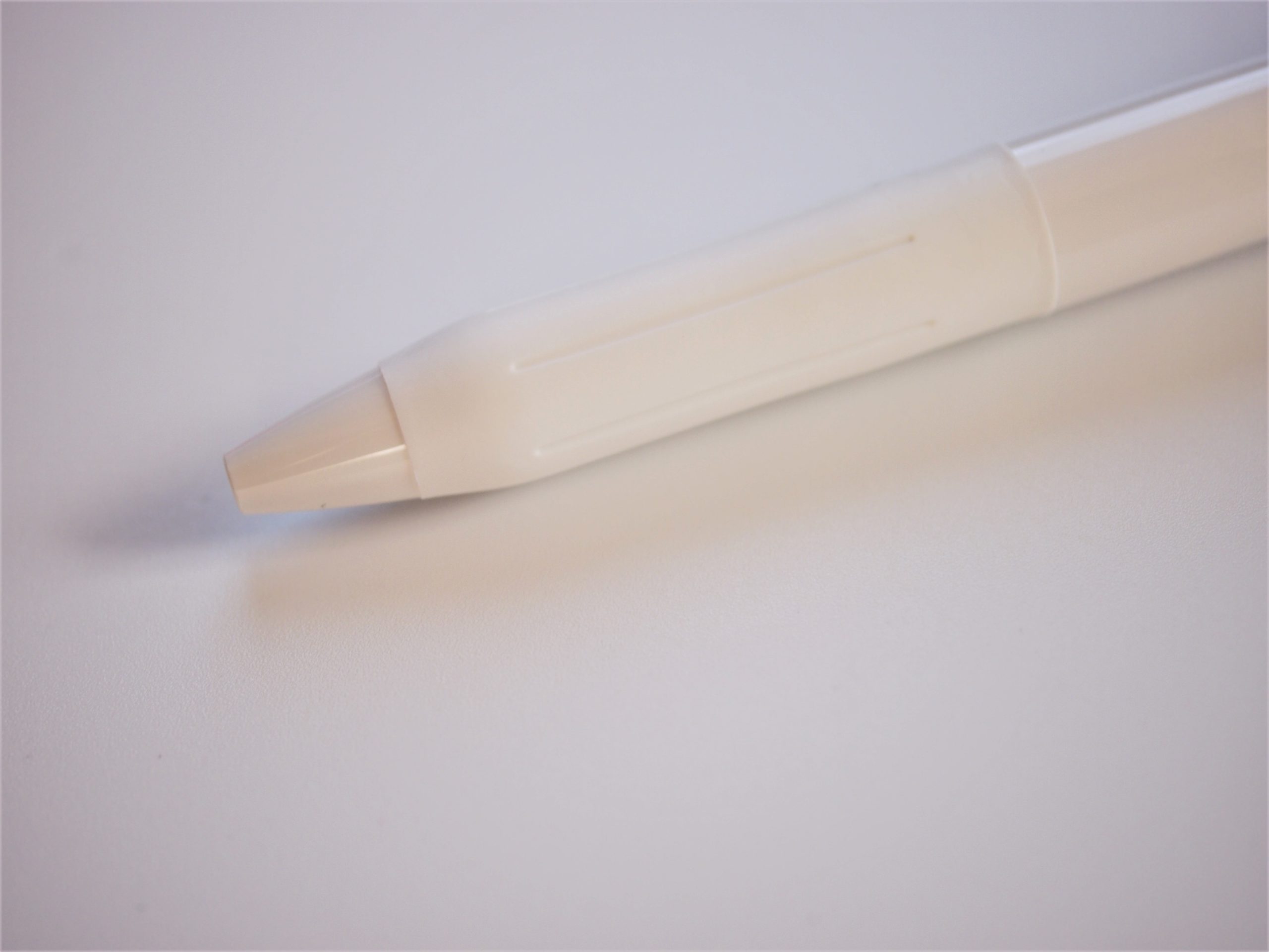 白を基調としたボディで、他の勉強アイテムと合わせやすいシンプルなデザイン。持つところまで白で統一されています。
